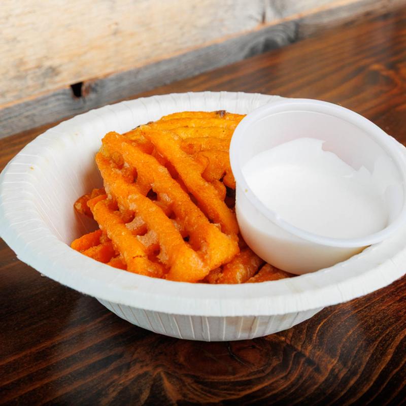 Honey cured Ham with smoked Gouda served on a Hawaiian roll with a side of house honey mustard