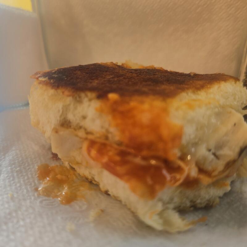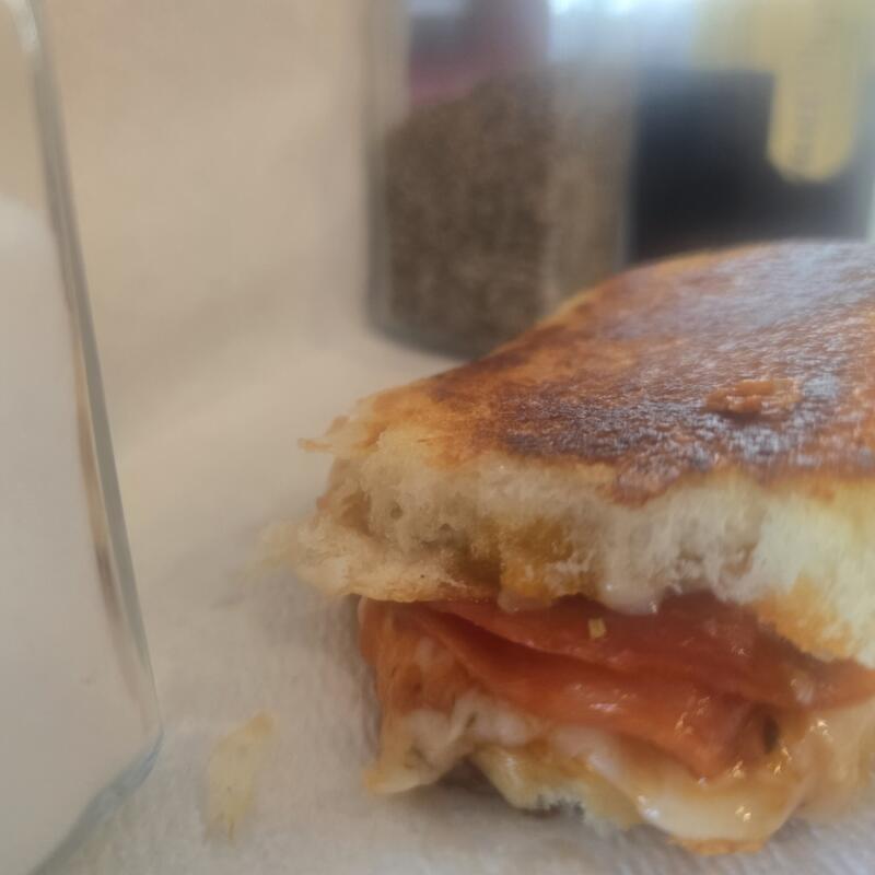 Pepperoni,Pizza sauce,Mozzarella on a Hawaiian roll