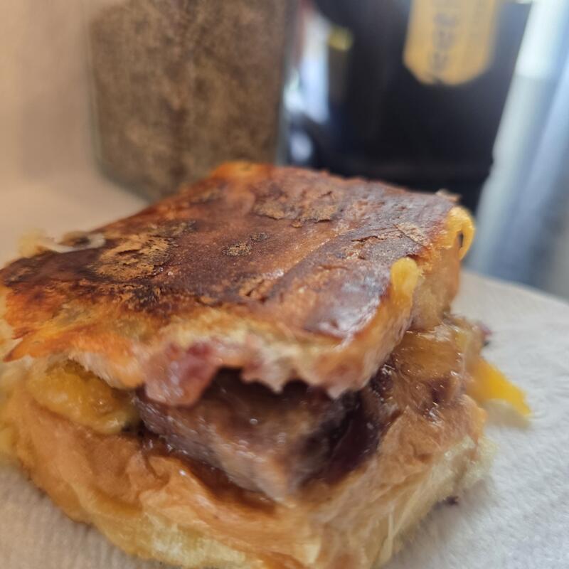 Angus Beef Brisket ,Blackberry Jam,Cheddar on a Hawaiian Roll
